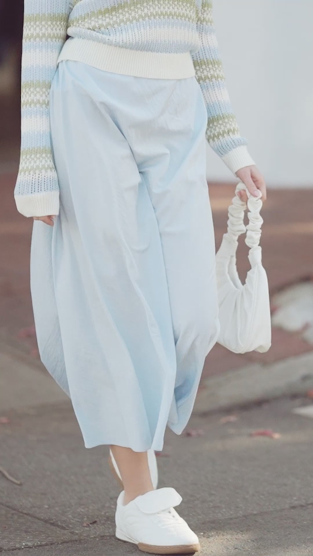 Mesh Striped Sweater-Light Blue/Lime Green