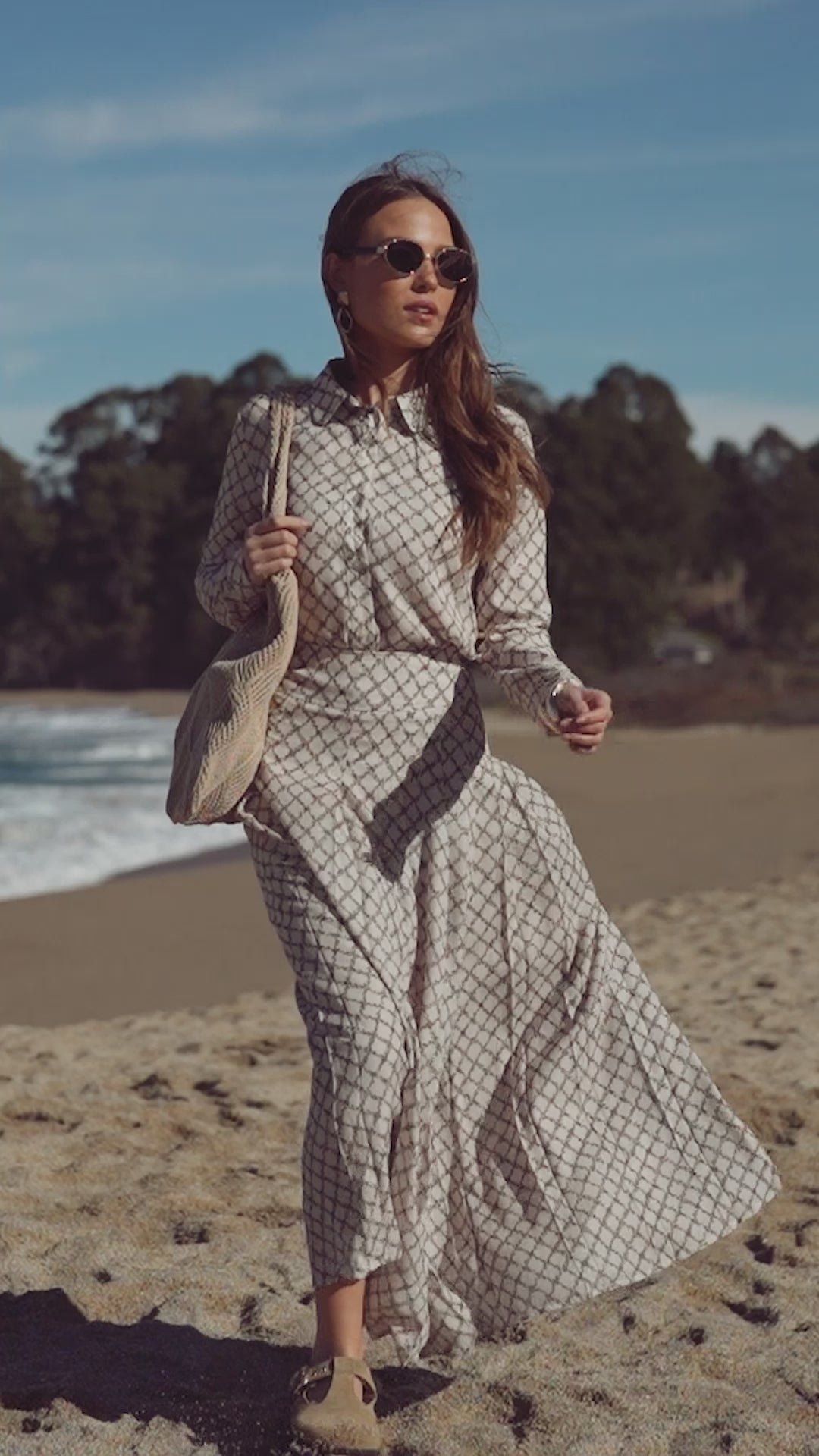 Printed Button Down Blouse-Diamond Leaves